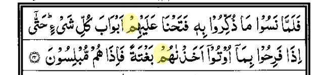 ছবিতে সৌদি প্রিন্টের [নীল পাতার] লিখায় দুটো মিম সাকিন হাইলাইট করা আছে হলুদ রং দিয়ে। এর এক জায়াগায় গুন্নাহ হয়ে টান হবে। অন্য জায়গায় কোনো টান হবে না। নরমাল সাকিনে যেভাবে পড়ে সেভাবে পড়তে হবে।
